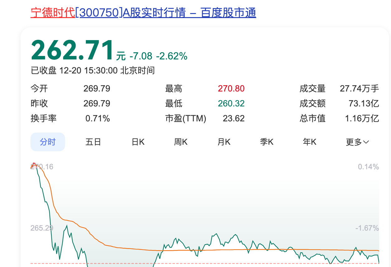图片来源:百度股市通,A股对宁德时代赴港二次上市传闻反应冷淡