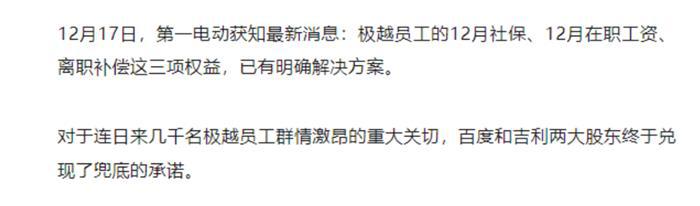 12月17日晚,我们发表了“一电独家 | 极越员工兜底方案已定,车主Simo和ASD系统兜底方案仍在讨论”一文,引起极越员工的严重关切——关于员工兜底方案,彼时没有任何渠道向员工透露。部分员工据此认为第一电动被带了节奏,甚至批评我们发假消息。