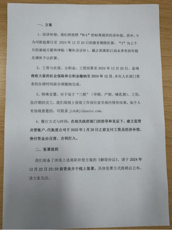 12月19日,极越员工维权取得重要进展。在政府相关部门的指导和见证下,吉利和百度两大股东将建立监管共管账户,代集度公司于2025年1月20日前支付工资及经济补偿,垫付资金由百度和吉利打入。