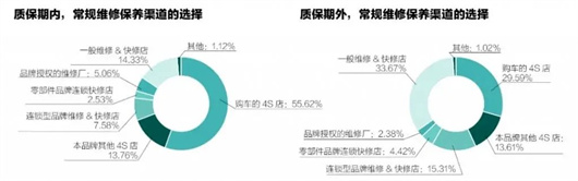 而质保期内在4S店做维修保养的受访者中,35.63%的人表示会在脱保后离开4S店,选择其他渠道。