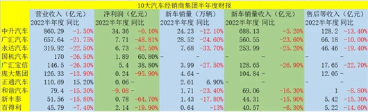 这么说是否夸大其词了?看看去年8月底,头部汽车经销商集团发布的2022年上半年财报就知道。