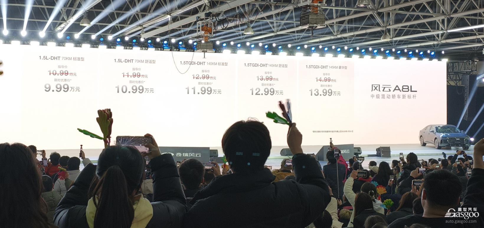12月17日,奇瑞风云A8L正式上市。该车共推出5款车型,售价区间10.99-14.99万元,限时优惠价格区间为9.99-13.99万元。