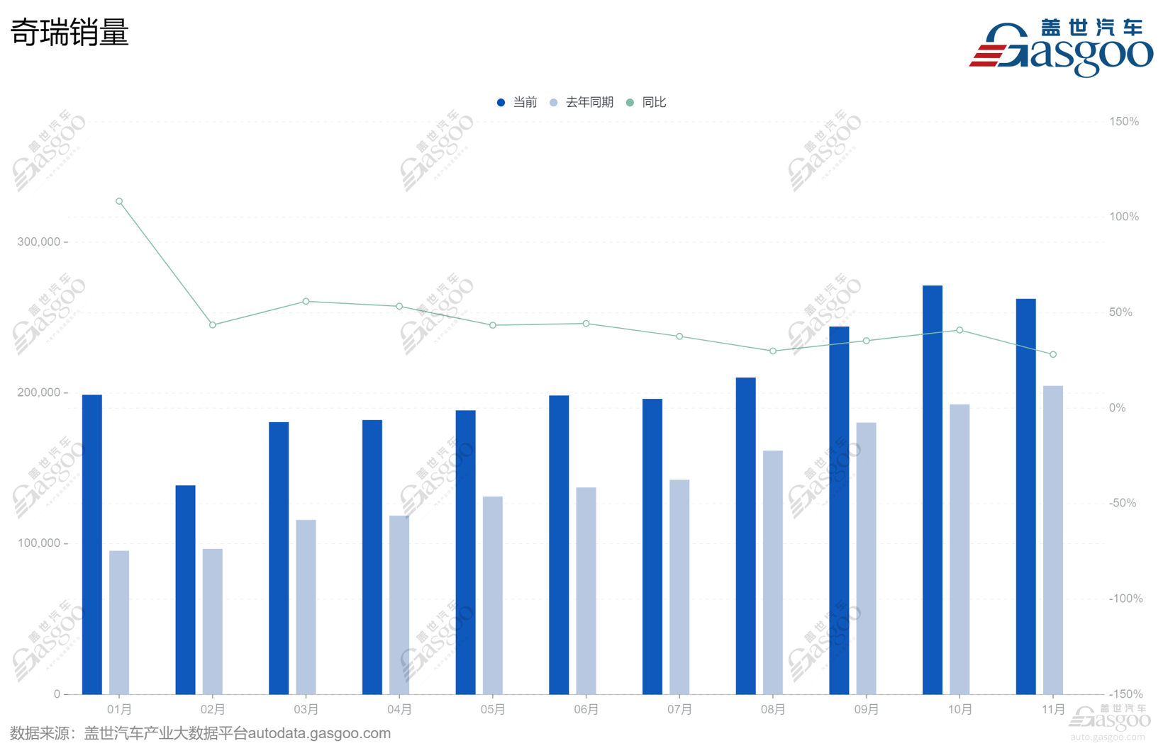 数据显示,1-11月,奇瑞集团累计销量达230.5万辆,同比增长38.4%。其中,新能源汽车累计销售48.1万辆,同比增长214%。