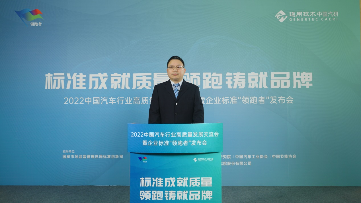 3月31日,以“标准成就质量,领跑铸就品牌”为主题的2022中国汽车行业高质量发展交流会暨企业标准“领跑者”发布会在重庆成功举办。该会议在国家市场监督管理总局标准创新司指导下,由重庆市市场监督管理局、中国标准化研究院、中国汽车工业协会、中国节能协会、中国技术经济学会、中国汽车工程研究院股份有限公司(简称通用技术中国汽研)主办。重庆市市场监管理局副局长李林,中国汽车工业协会总工程师、副秘书长叶盛基,中国技术经济学会副理事长马林聪 ,通用技术中国汽研董事长李开国,中国标准化研究院资源环境分院院长林翎等领导及比亚迪、上汽大众、宁德时代、福田汽车等40余家汽车企业和媒体代表通过网络连线出席了此次会议,共同见证了汽车行业2021年度企业标准“领跑者”的评价结果,探讨了企业标准“领跑者”助力汽车行业高质量发展的典型案例。